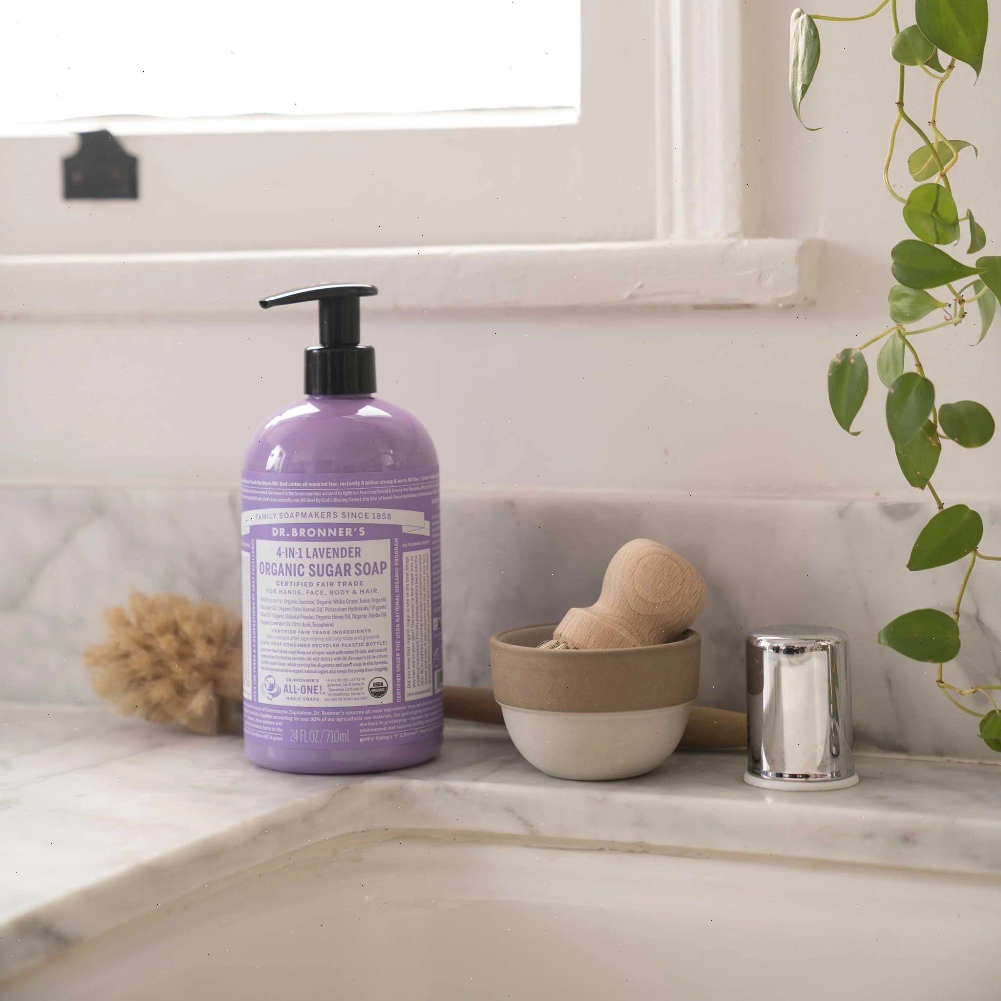 4-in-1 Organic Pump Soaps are good for washing hands, face, body & hair & place by your sink or in the shower! To wash hair work one pump of Organic Pump Soap into wet hair until it lathers, then rub and rinse. Repeat for thicker or longer hair. After washing, follow up with a lightly acidic conditioning rinse, like Dr. Bronner's Citrus Organic Hair Rinse to leave hair silky smooth! Don't have our Organic Hair Rinse? Use diluted apple cider vinegar or lemon juice! OK!