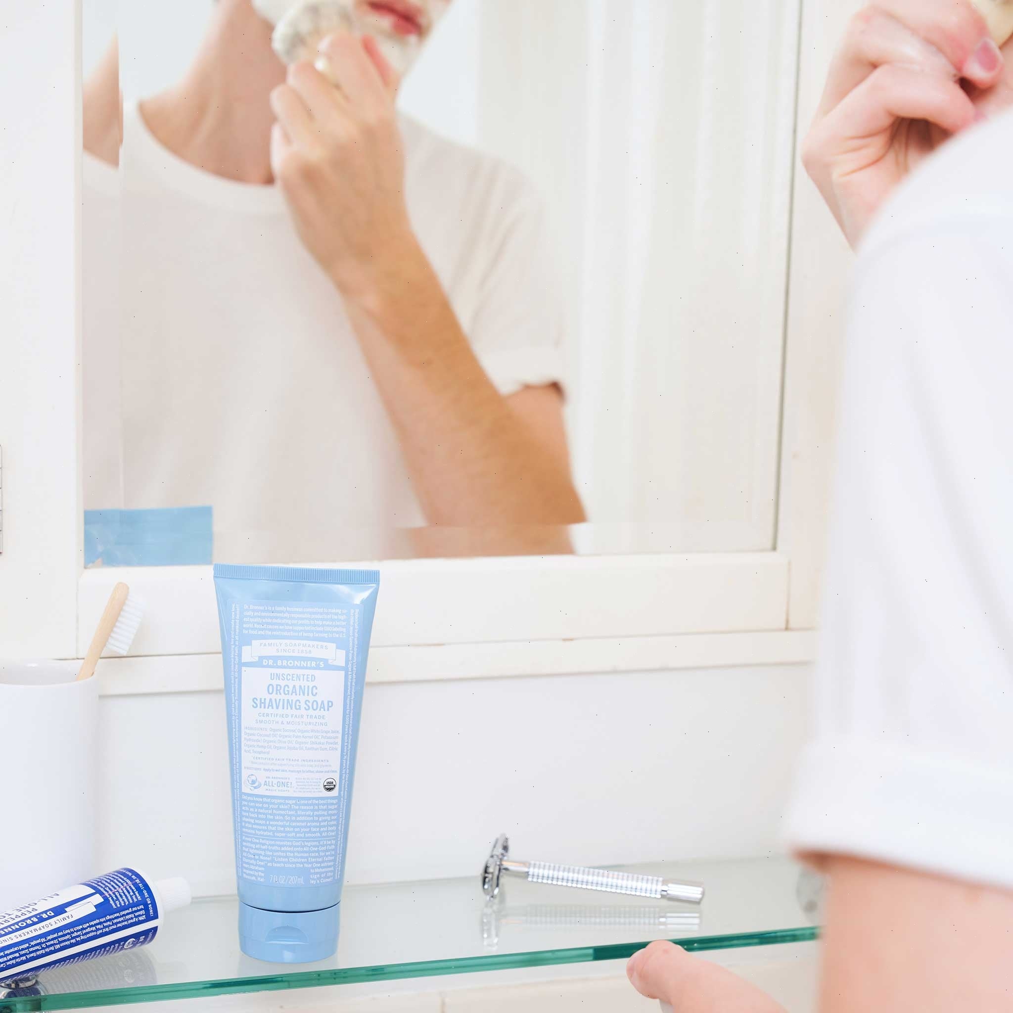 Squirt a little bit of Shaving Soap onto your hands (about the size of a nickel) and rub them together for a good lather. Apply to face-underarms-legs and continue to rub soap into skin and hair, enhancing the lather and preparing skin for a good, clean shave. Works best right out of the shower‚ when skin is moist and hairs are soft! Keep out of eyes.